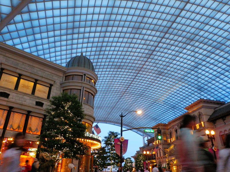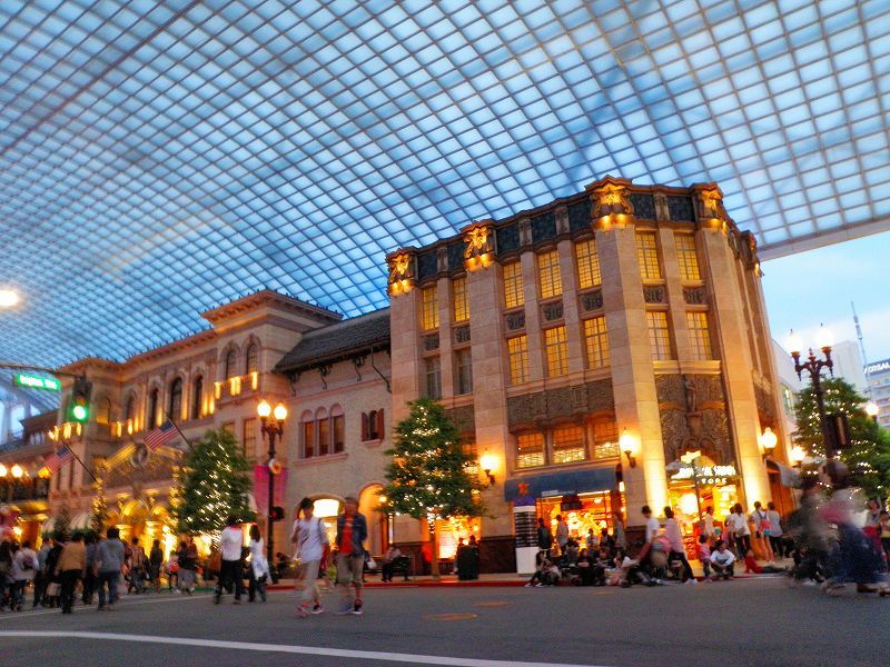夕暮れ迫る「ハリウッドエリア」のキャノピー下 「ビバリーヒルズ・プランジェリー」前交差点で^^