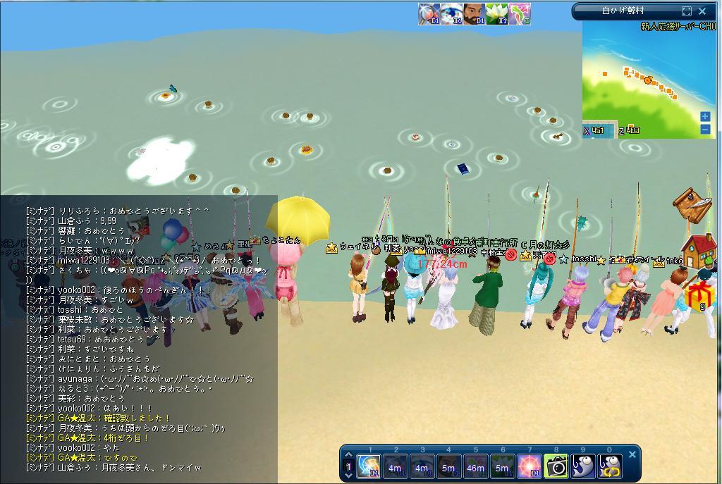 しっとり、しりとり♪に参加して横一列に並んで釣りをしながらしりとりをしました。4ケタゾロ目の人は2倍もらったとか言っていました。