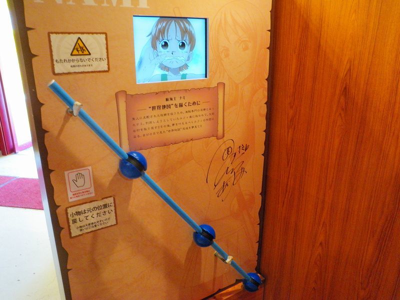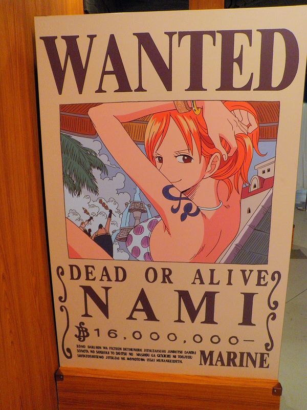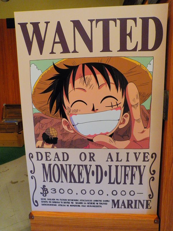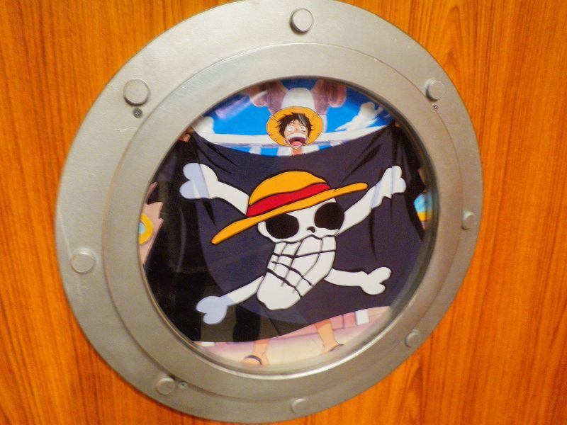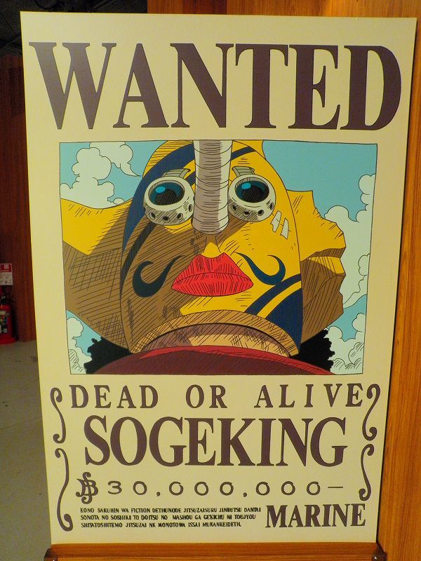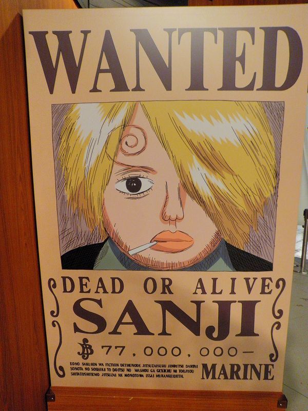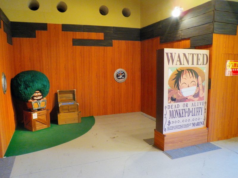最初のエリアは、「イーストブルー篇」で初期のメンバーが手配書で勢ぞろい^^勿論、代表するグッズが小物として準備されており、ゲストが着用しての記念撮影が行われてましたネッ(oゝД・)b