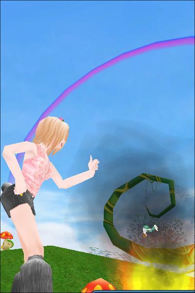 めろんめろんの怒りのパワー炸裂で魔女っこりーは、頭をしめつけられ、