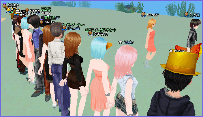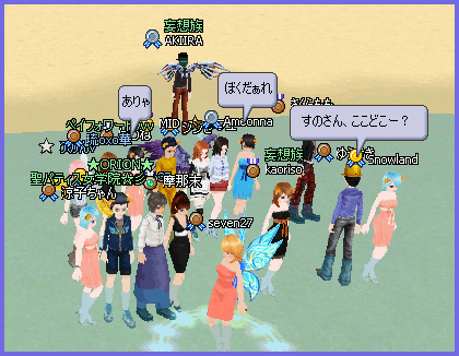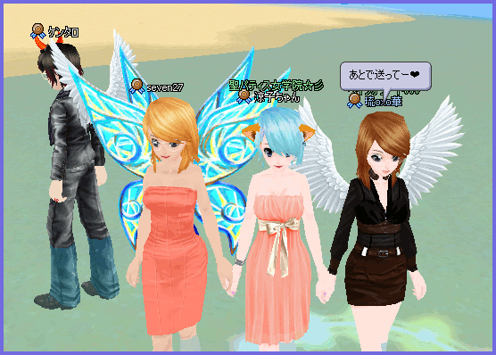 Lvアップがおわってしばらくして、るかさまとセブンさんが、いたので、3人で、おててにぎにぎです♪