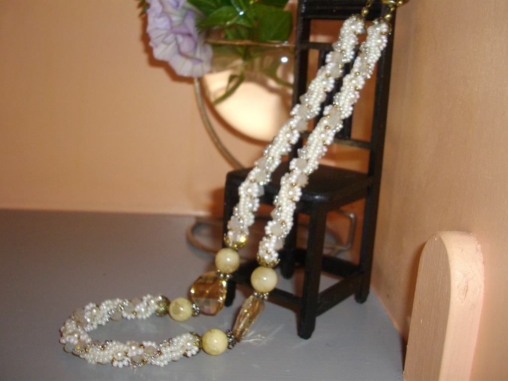 このネックレスはもちろん自分の為もの・・・ジュエリークロッシェで編んだものです。