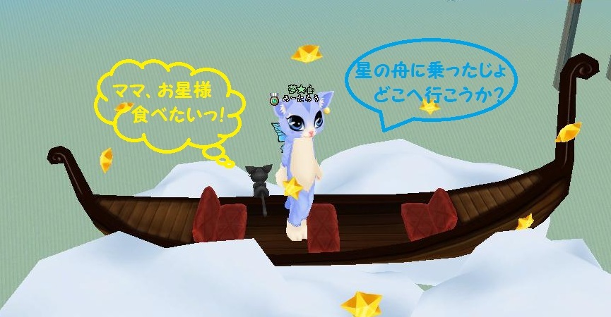 雲の上にぽっかり浮かんだ箱船♪エル君がお星さまを食べたがってるので、ミルキーウエイに行くことにしたじょ^^