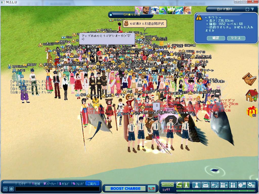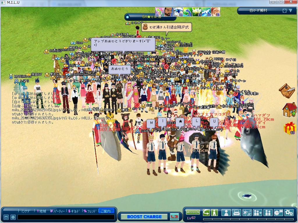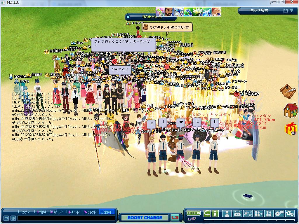 金曜の23:15、GA☆そば湯さんとの共同UP式に参加してLv62niUPしました。