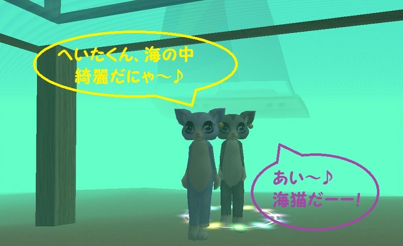 早速海の中に潜ってみるぎゃ・・・・・、動けにゃい!!!