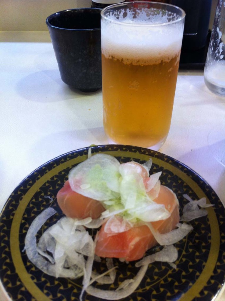 ↓これは回転寿司の生ハムバジル寿司ねw 90円なり ノンあるビールはアサヒドライzero