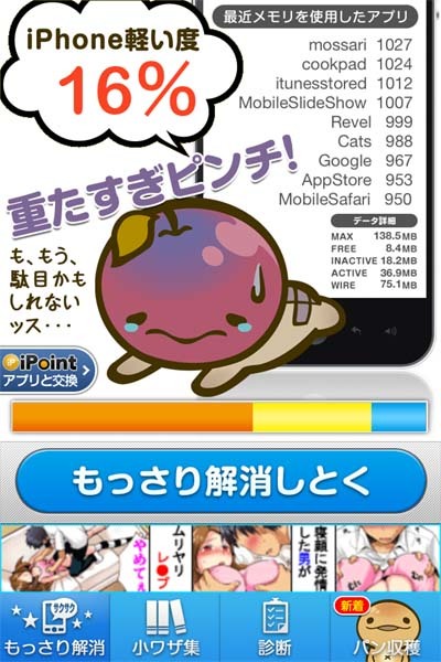 関係ないけどスマホのアプリでメモリ空けるやつの画像