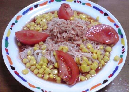 カゴメのサラダそうめん用トマトつゆを使って作ってみました