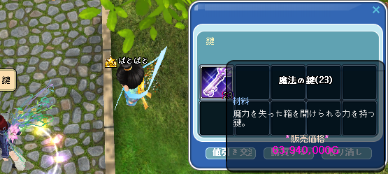 魔法の鍵が23コで[63,940,000ゴールド]で売られていました。