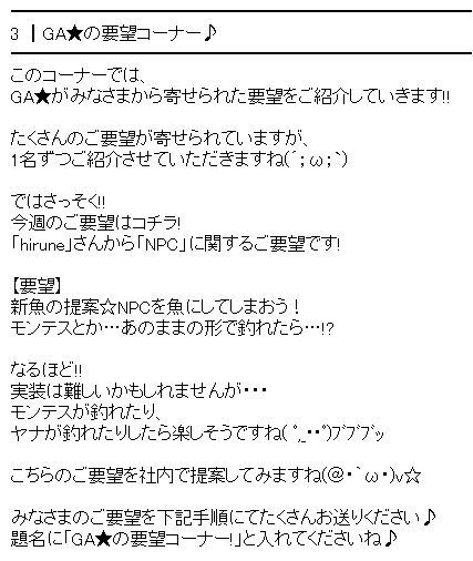 つい最近・・おっさんと釣りながら話してて、要望出せって言われて・・出したばかりっすw