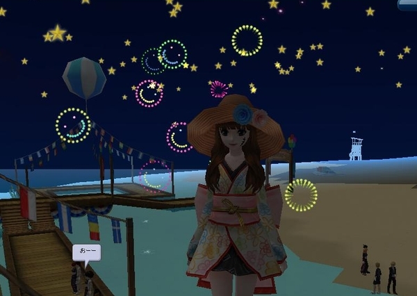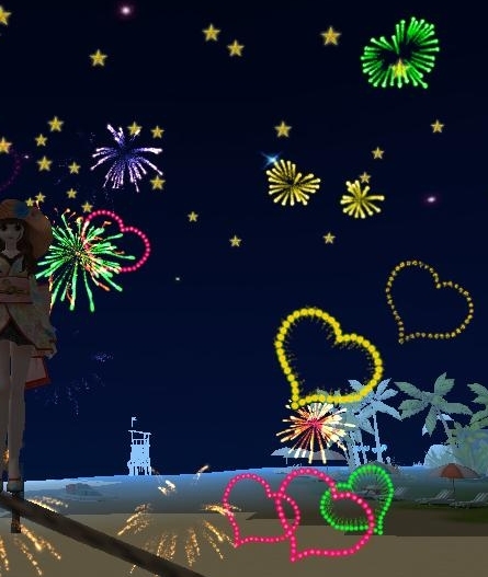 スマイルとハートの花火でした。きれいきれい。