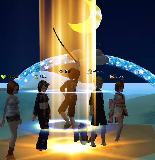 月をバックにレベルアーップ!