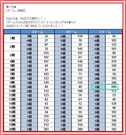 よりも、2位がBチームということにチョットびっくり(Bチームの皆様失礼m(__)m
