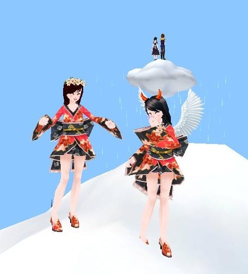 レベル20の浴衣を着て、雲の上でママンと記念撮影(*´▽`*)~♪