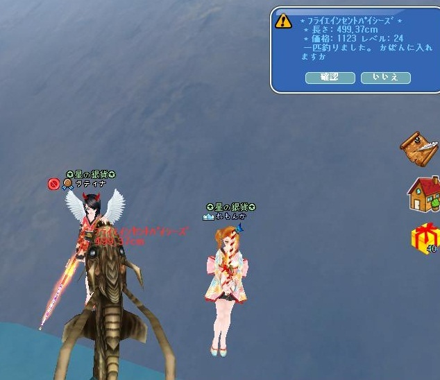 しばらく釣ってると、ギルマスでありよくお世話してくださるれもんかさんが 来てくださいました!(≧ω≦)