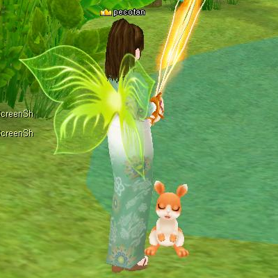 浴衣と 葉っぱの羽が微妙な色合いで合ってると思う。