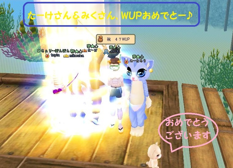 8月の終わりの話ですが^^、みーにゃんこの大切な家族でギルマスのたーけさんが、みくさんとWUPしたにょ♪