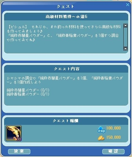 これ、純パウを調合せよってクエなのね。釣るんだと思ってたわ~~~