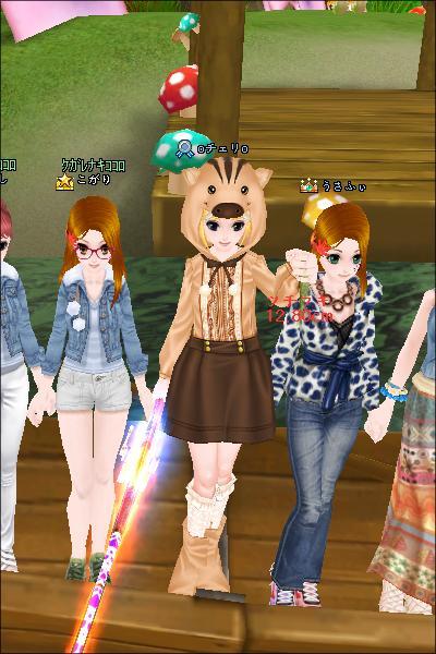 やがてチェリさんもインしてきて、キノコで一緒に釣り始めました。