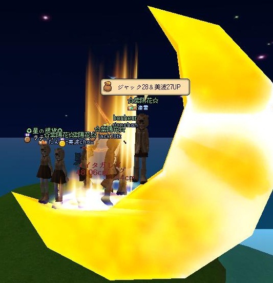 猪がこんなに乗ったら、月が落ちるんじゃないかとヒヤヒヤしながらの UP式でしたwww