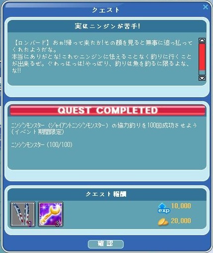さてさて、にんじん掘りクエも無事終わったので