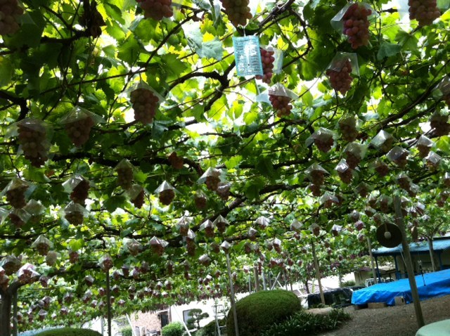 ぶどう園で、ズラーっと成ってるぶどうを眺めながら