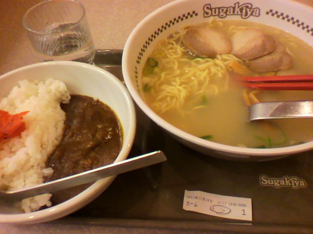 すガキヤの『カレー+ラーメン』660円セットだった。
