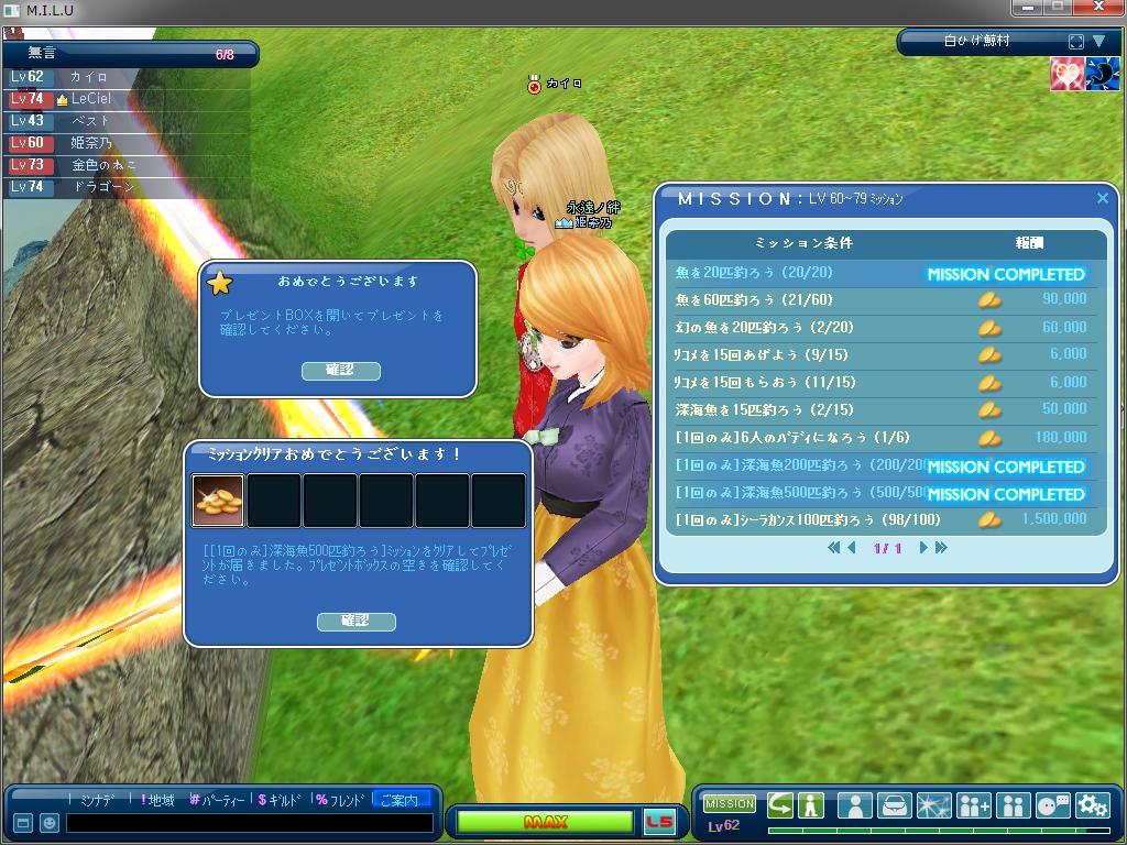本日、Lv60-79ミッションの深海魚を500匹釣ろうをなんなくクリアしちゃいました