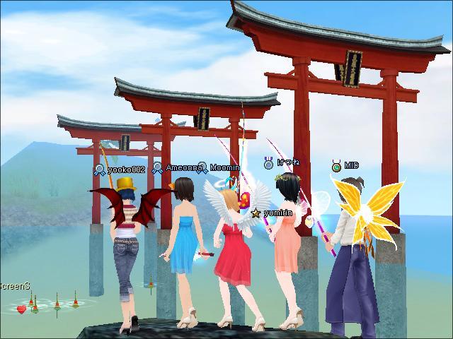 鳥居をバックに