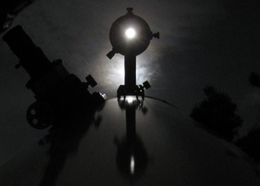 携帯で撮影前に、月を視野の真ん中に入れているところ。 を友人が撮影してくれてた