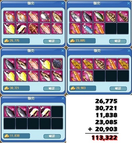 というわけで、113,322ゴールドでした^^