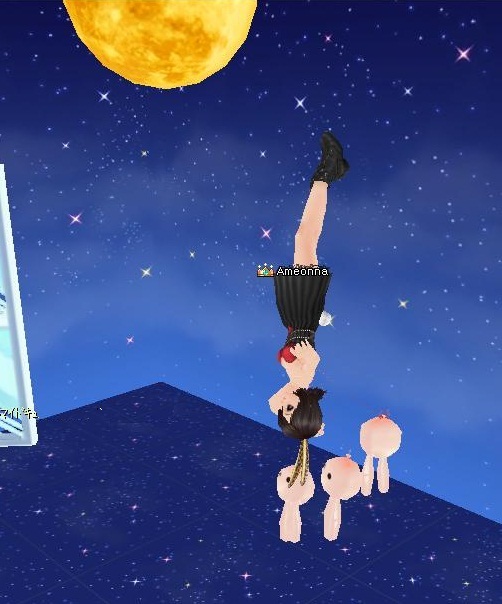部屋でムーンサルトの練習をしています。ウサギもさかさまになるのです。