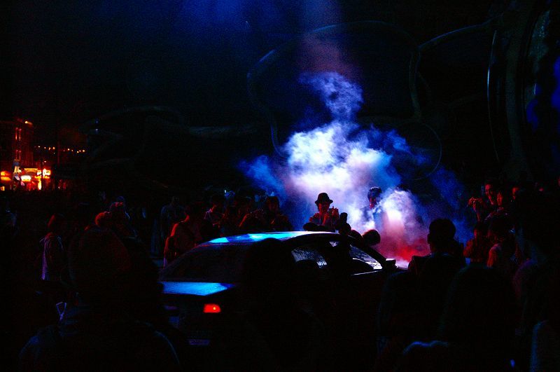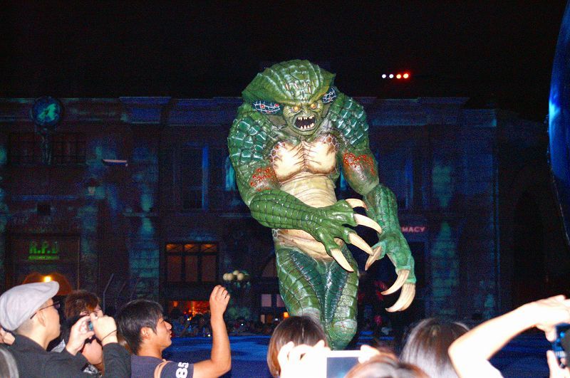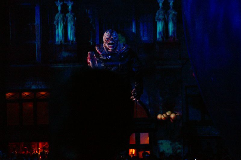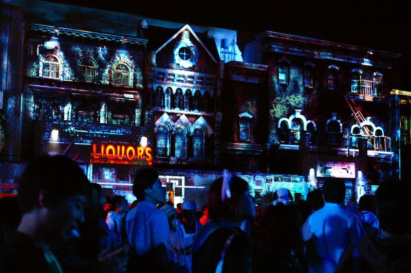 周囲の建物に、「デジタル・プロジェクションマッピング」で投影された画像で、夜になるとソコは「BOW」や「ZOMBIE」蠢く「ラクーン・シティ」に変貌します ヒィー(>ω<ノ)ノ