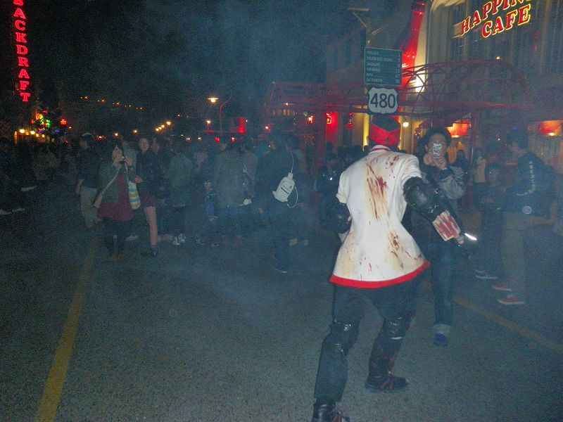 まっ・・・ご覧頂いた様に、メイキャップされたZOMBIEの皆様より、周りに群がるGESTの皆様の方が、ワラワラ寄って行きながら急に吼えられたり、動きが早くなるだけで逃げ回る輩なので恐ろしく見えるかも・・・いや、実際浅ましくあくどい(o´・ω-)b ネッ♪