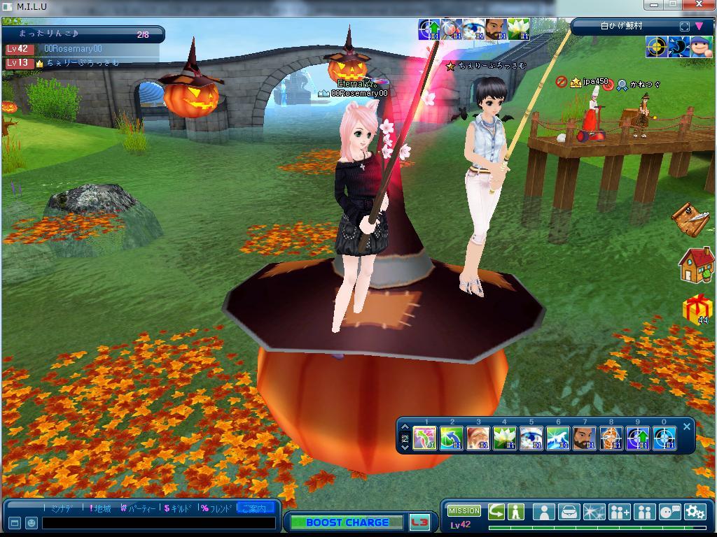 この後ぼんくんはお仕事で落ちてしまいましたが、カボチャの上で