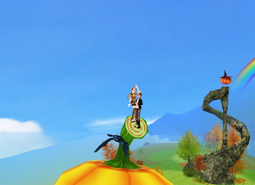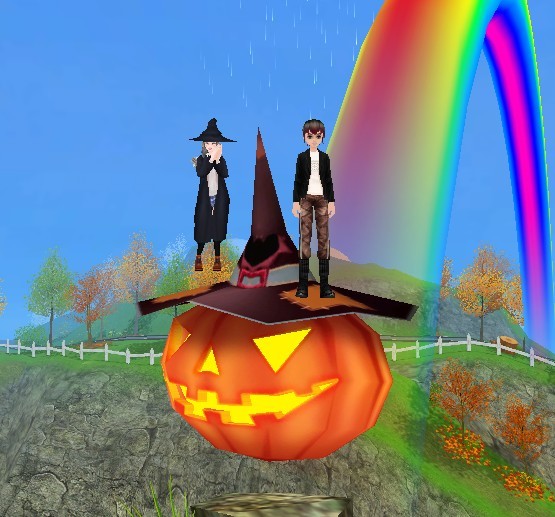そしてなんと言っても、虹とシャシャの塔と、カボチャの融合した景色がキレイでキレイで♪