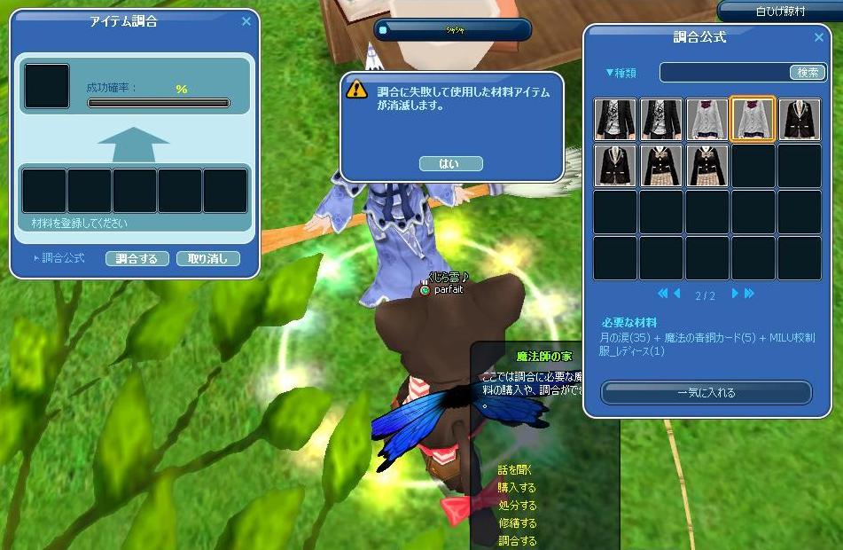 メンテ後にラフな制服❤が登場したので、早速調合に挑戦してみました☆