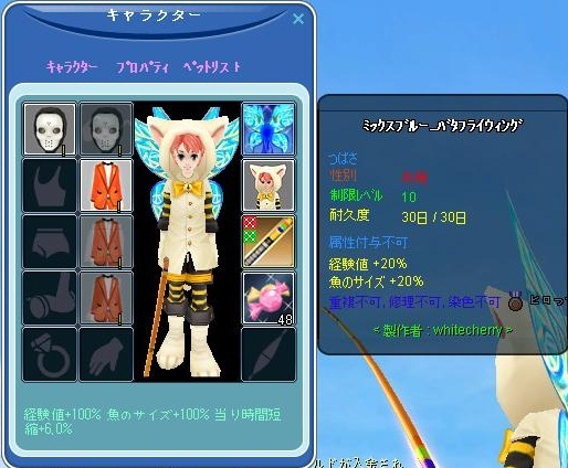 被り猫コスと、ミックスブルーバタフライウイングです。