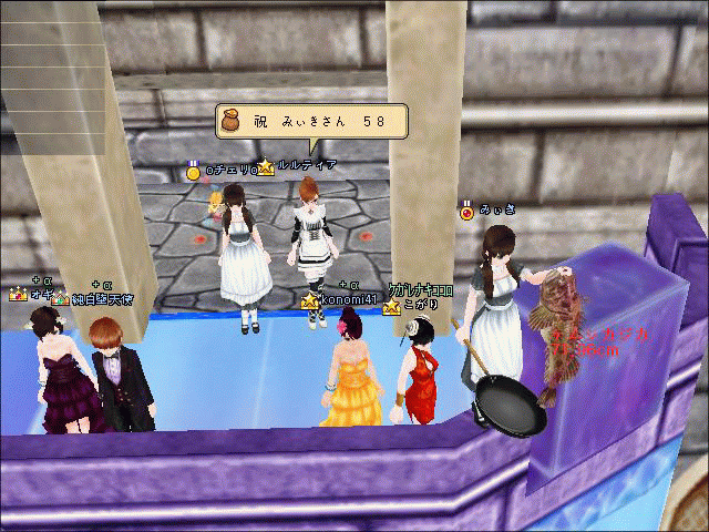 うしろでメイド仲間のチェリさんと、メイド長のるるさんが心配そうに見守っています。