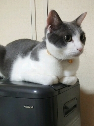 ふてくされてずっとファンヒーターの上にいて