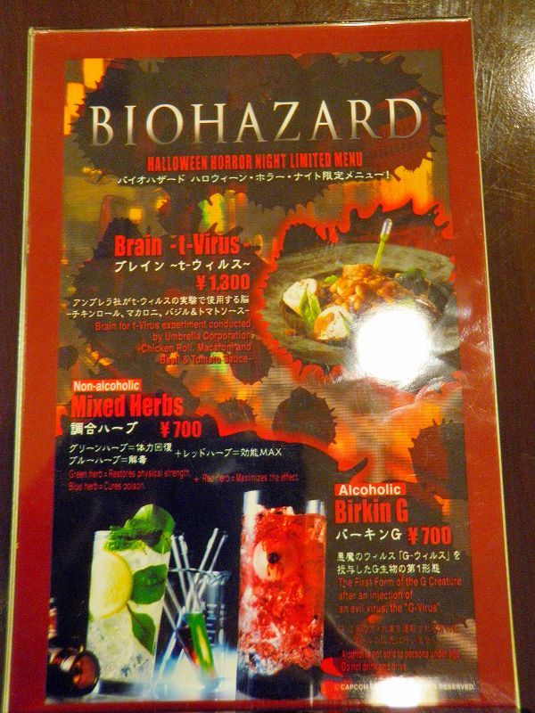 夜は、「ニューヨークエリア」の「フィネガンズ・バー&グリル」にて、最後のチャンスとなる「ホラー・ナイト・メニュー」のt-ウィルスに感染した脳みそってタイトルになってる、「ブレイン ~t-ウィルス~」を食べて来ましたよぉぉチキンロール・トマトソース/マカロニのお料理は・・・普通に美味しかったっす (≧▽≦)ゞ