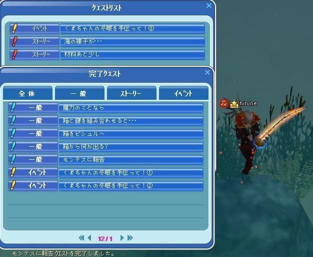 昨夜の段階で、ここまでクエ完了してました☆