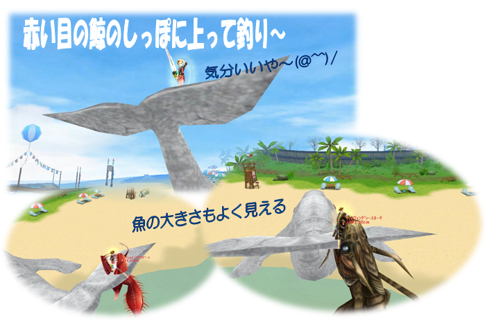 私は釣ろうとして走ってしまい・・しっぽから落下しました >< |
