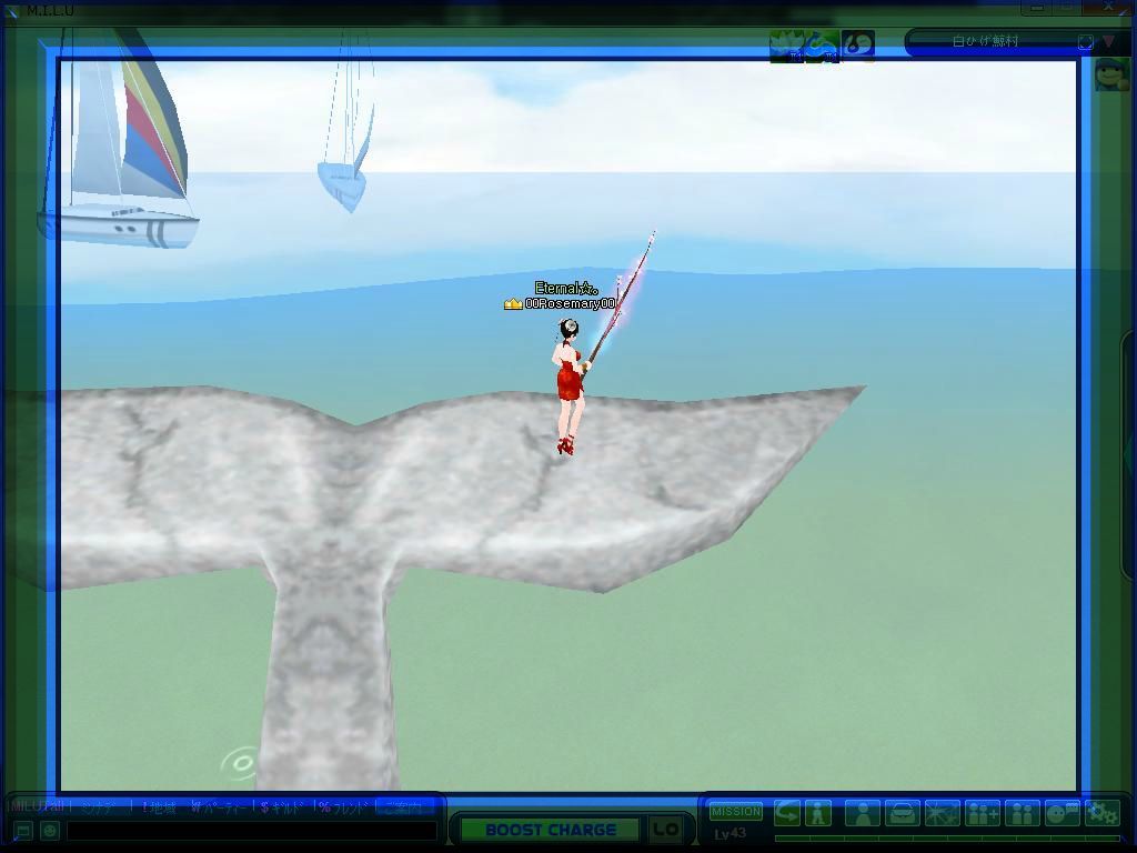 クジラさんの尻尾の上で、私の44UPです イエ━━(*´∀`)ノヽ(´∀`*)━━イ♪