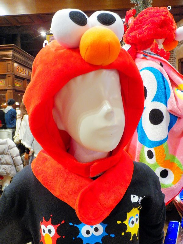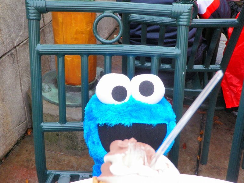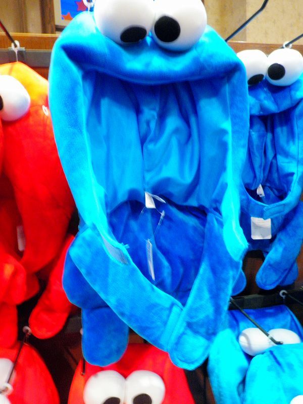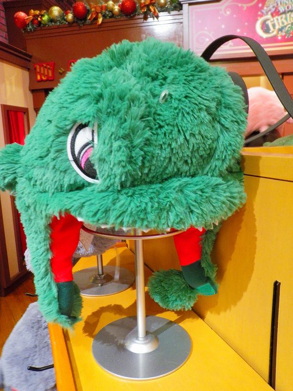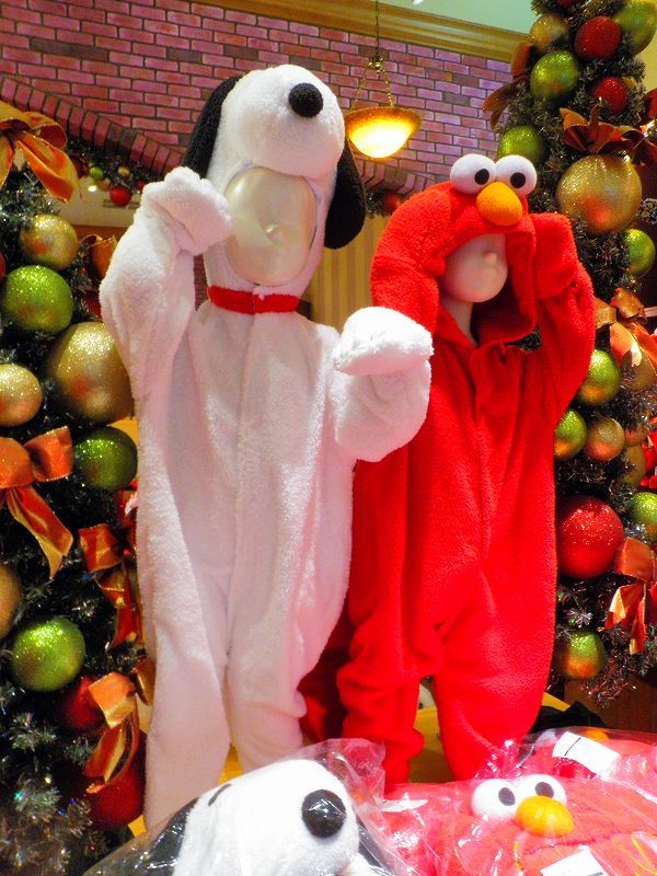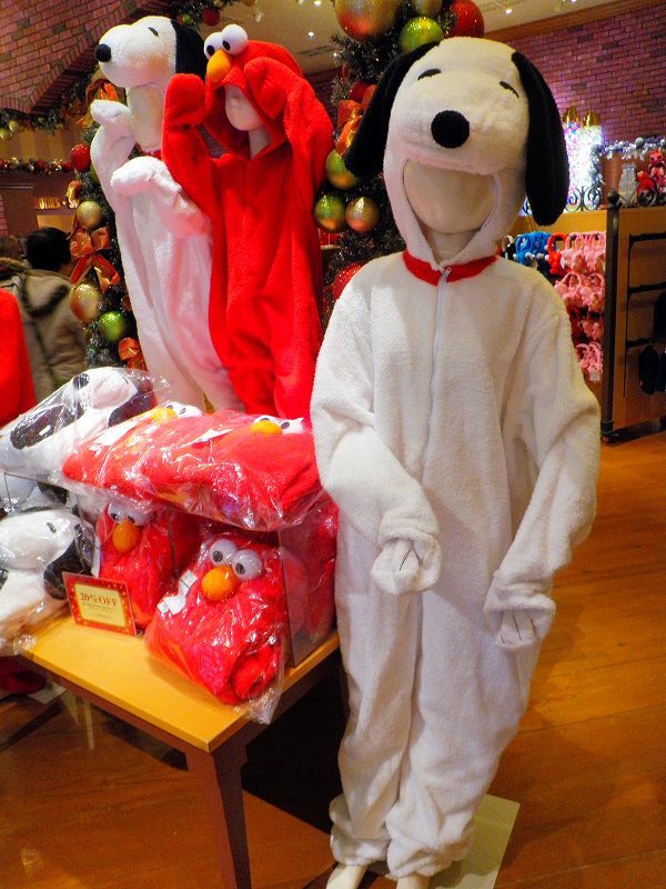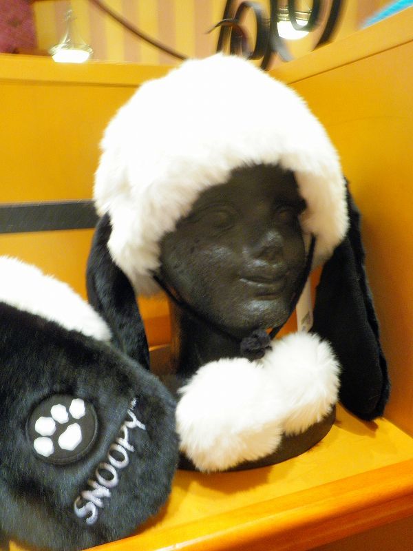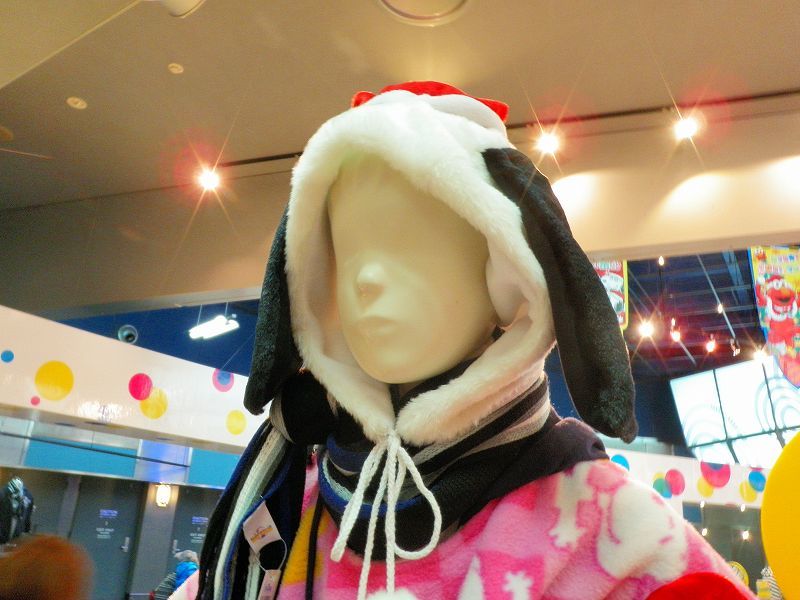 「スヌーピーの被りモノを被った「スノーパーティ・クルー」を撮ってみました♪自分撮りは(ヾノ・∀・`)ムリムリでもって、マネキンが被ってたヤツに本日のお相手「クッキー・モンスター(ボードゲームでの戦利品)」がソフトクリームを食べるの図 (≧ω≦ )プププでわぁ、USJ最新(2012-2013)冬物ファッションの被りモノを一挙ご紹介です・・・※気に入ったのがあれば各自で買ってね♪