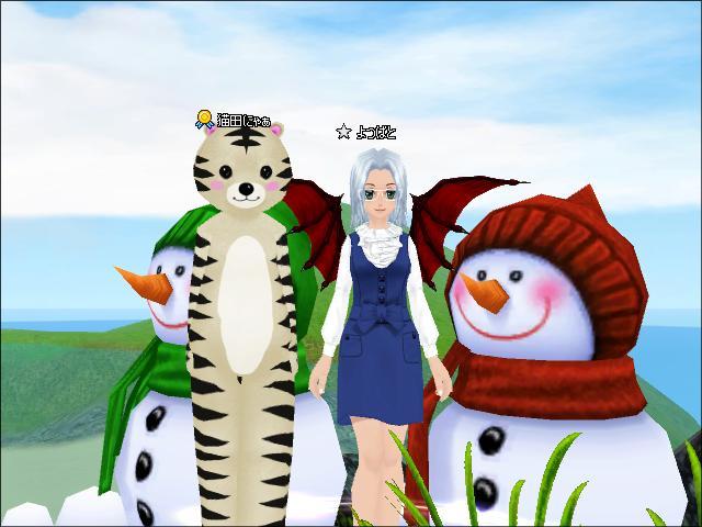 よつばちゃんと雪だるまで記念撮影