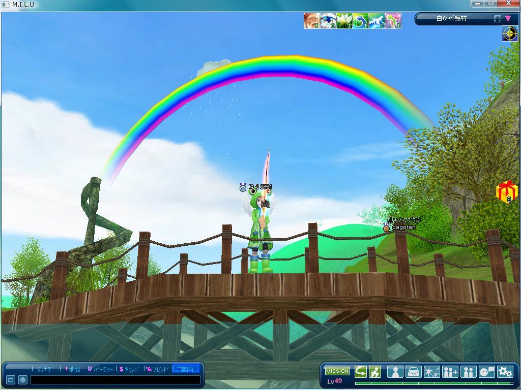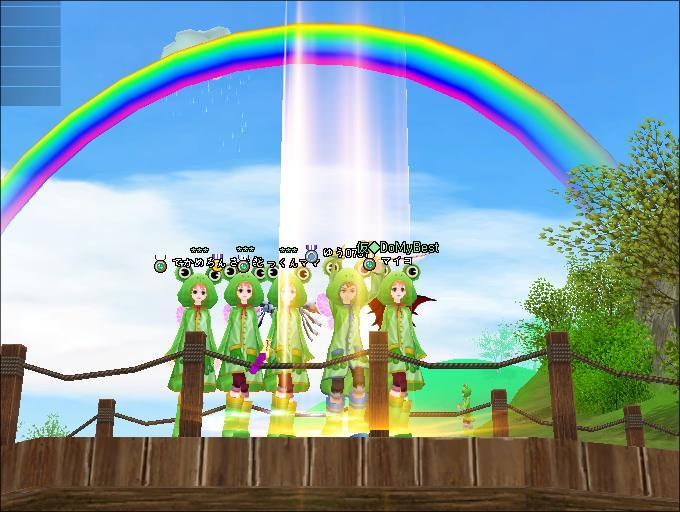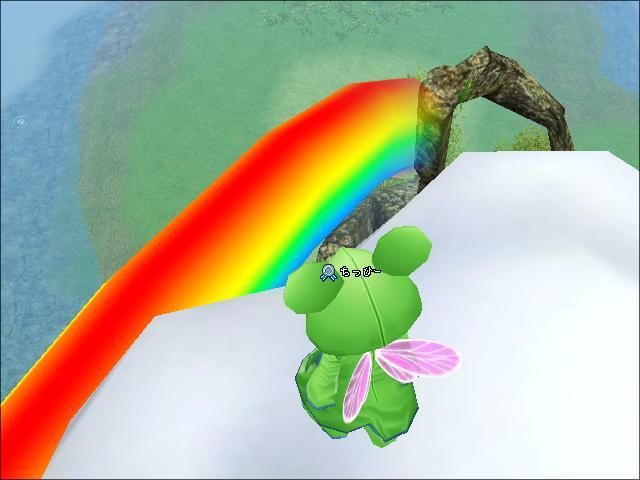 虹をバックに