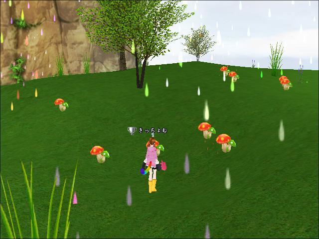 きのこの森も虹の雨が…!
