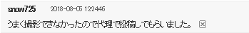 ①本文 : 代理投稿であることを明記 → (例) snow725さんがうまく撮影出来ないとのことで代理投稿です。