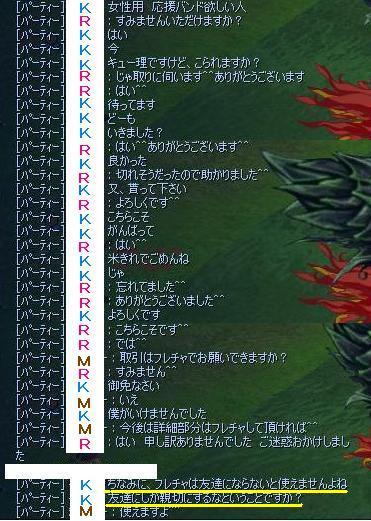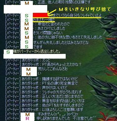 皆さんもPTの利用目的により自身の判断で参加してると思いますが、 今回はちょっと?と思う点があったので 個人プライバシーのため名前は伏字にして 会話ログだけ載せさせていただきました。